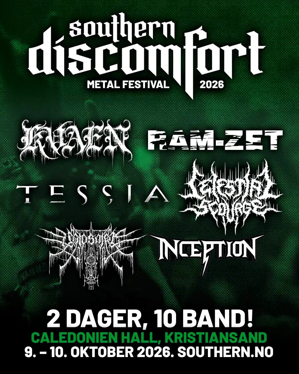 Southern Discomfort metal festival 09 og 10 oktober 2026, Caledonien Hall – Kristiansand.